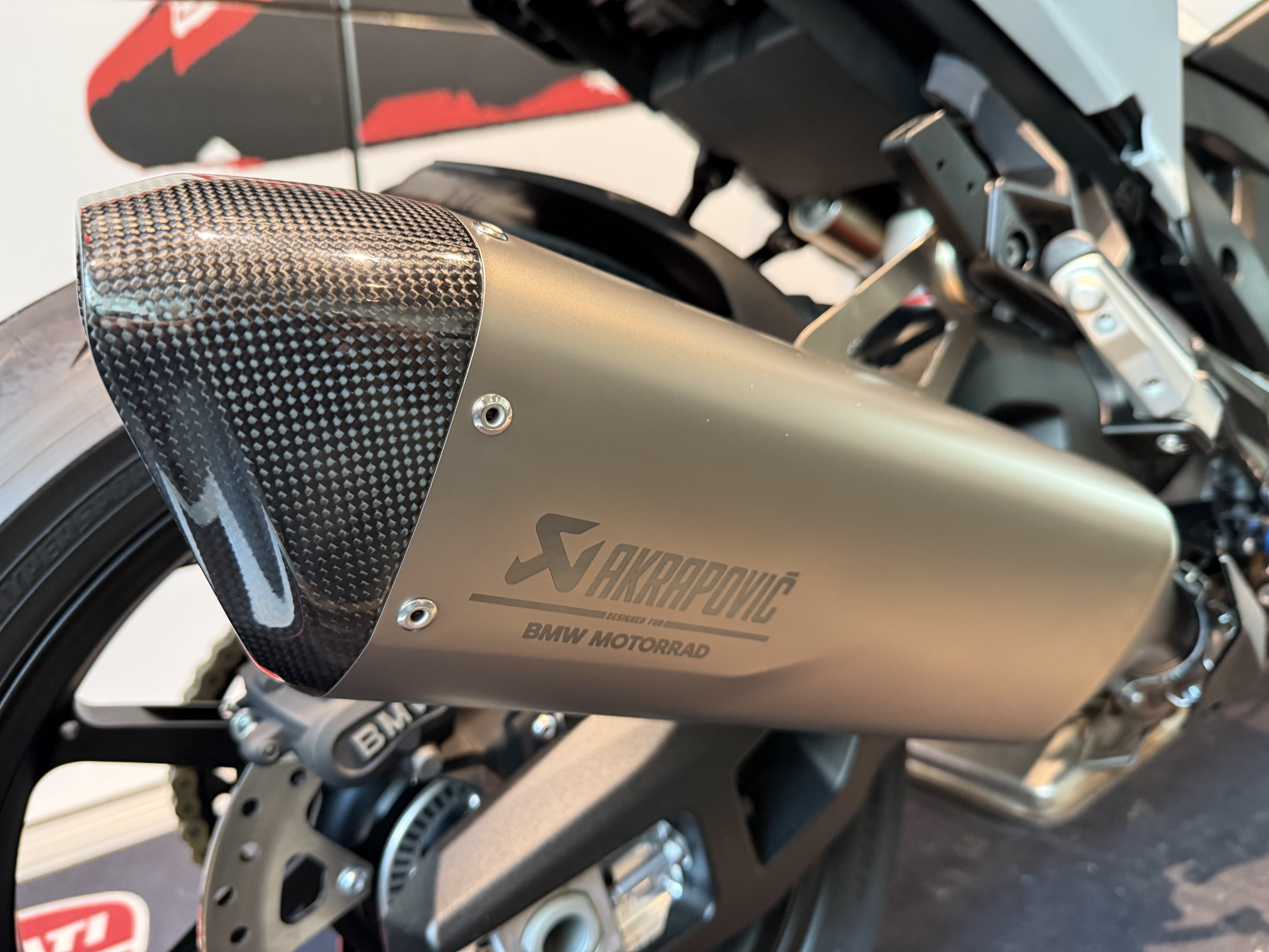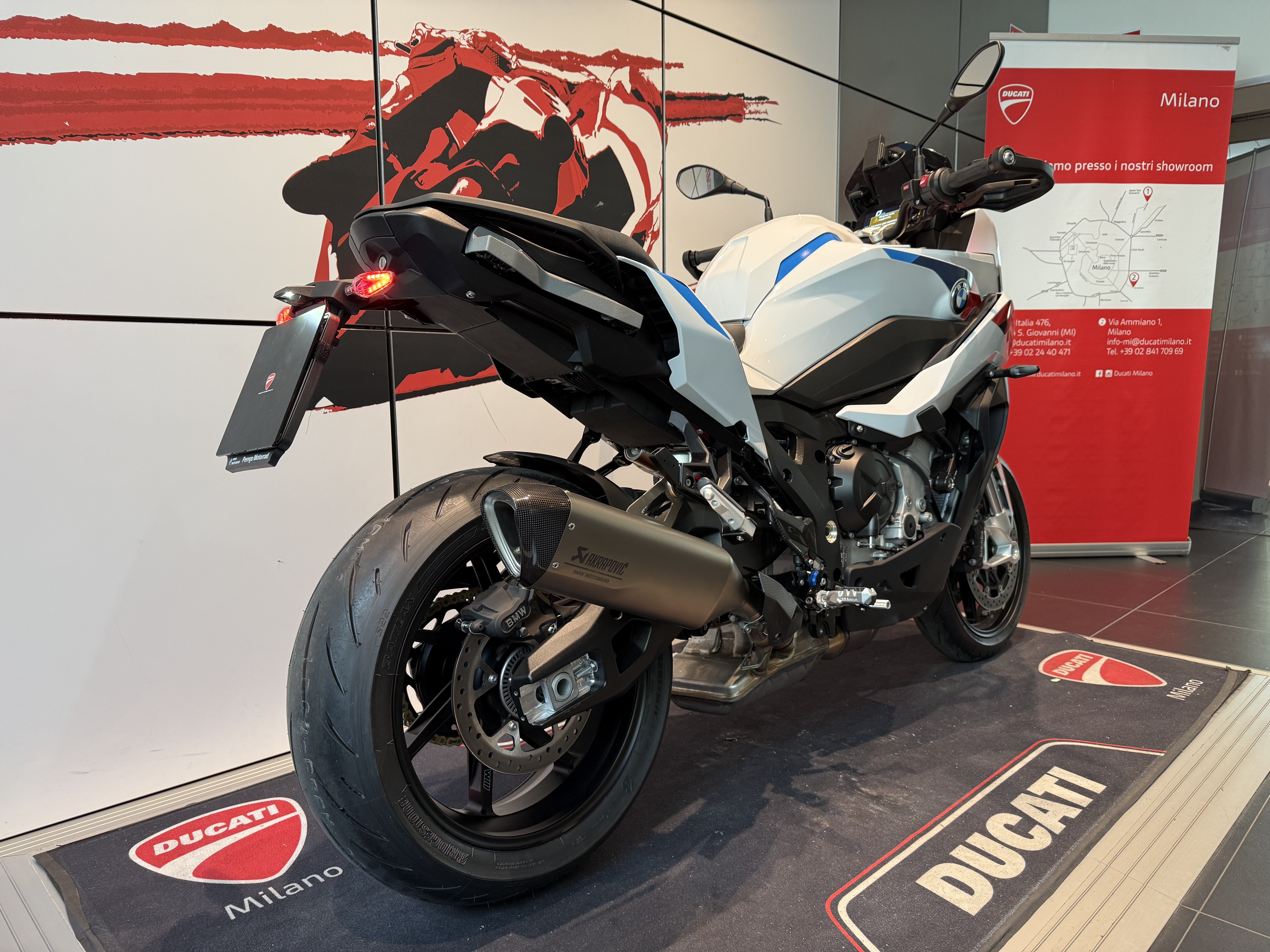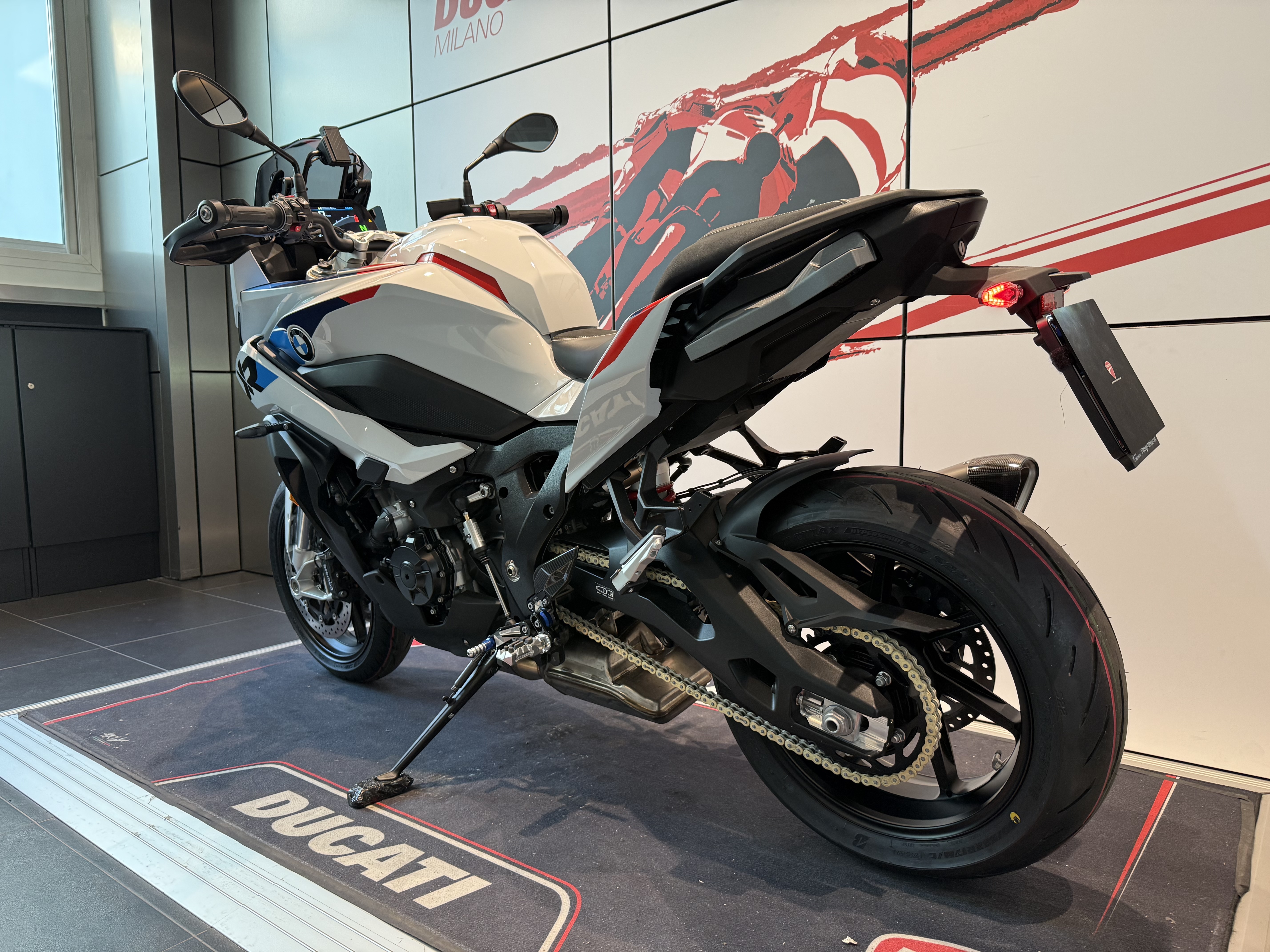 - Pacchetto M (terminale Akrapovic, cerchi forgiati, sella M, catena M endurance, batteria M litio, parabrezza sport fumè).